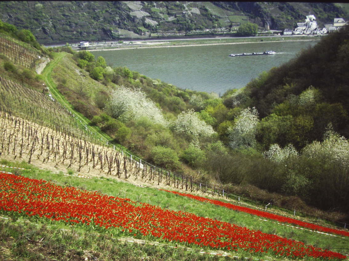 Rheingarten entstand aus der Idee durch Blickachsen die beiden Rheinseiten des Mittelrheintales miteinander zu verbinden. Beide Rheinseiten leben vom Weinbau in den Steilhängen und vom Tourismus, sie sind nicht durch eine physische Brücke verbunden. Der Weinbau in den steilen Schieferhängen ist beschwerlich und regelmäßig fallen Weinberge brach, werden nicht mehr bearbeitet. Das gefährdet die Kulturlandschaft, die seit Römerzeit von Menschen geformt wurde. Mit diesen Grundbedingungen entwarf Victor Sanovec ein Netz aus Gärten entlang des Rheins, die sich in den brachliegenden Weinbergen mit ihren jeweiligen Blühfarben von der Umgebung abheben. Der Wanderer, Schiffsreisende etc. wird so optisch von Seite zu Seite entlang des Tales geleitet.